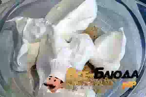 1. Грецкие орехи моем и обжариваем на сухой (без масла) сковороде. Пересыпаем на тарелку, даем остыть и измельчаем в мелкую крошку. Белки взбиваем, постепенно добавляя сахар и лимонный сок, в крепкую пену. Аккуратно смешиваем ореховую крошку с белками в однородную массу.