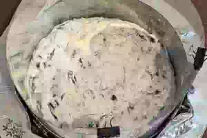 3. Кольцо для выпечки диаметром 18 см застелить фольгой. Насыпать в кольцо большую часть крошки. На неё выложить сметанный крем
