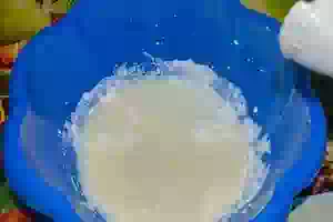 4. В миску засыпаем желатин, заливаем холодной питьевой водой и оставляем на 15 минут, чтобы кристаллы желатина набухли. Затем разогреваем желатин на водяной бане и следим за тем, чтобы все крупинки растворились, при этом масса не должна закипеть.