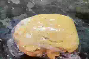 4. Вымесить, собрать тесто в комок, завернуть в пленку и убрать в морозилку на пару часов.