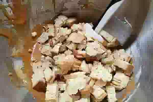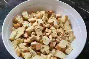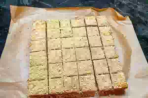 6. Когда печенье пропеклось и подрумянилось, вынуть его из духовки и дать остыть. Затем порубить ножом на небольшие кусочки. Часть печенья измельчить в крошку.
