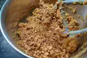 10. Добавить в крем кусочки печенья и дробленый орех.