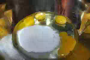 1. Венчиком взбить яйца с сахаром, солью и ванилином.