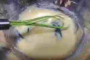 6. Прикрыть заварной крем пищевой пленкой в контакт, чтобы на нем не образовалась пленка. Крему дать остыть до комнатной температуры. Затем взбить его со сливочным маслом с помощью венчика.