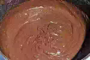 2. Для шоколадного теста в миске соединяем муку, разрыхлитель и какао. Перемешиваем венчиком. Муку и какао предварительно просеиваем через сито. Взбиваем яйца, желтки, соль и ванильный сахар одну минуту. Постепенно добавляем 180г сахара, взбиваем ещё 3 минуты. Затем вливаем молоко и сливочное масло (всё комнатной температуры) и хорошо перемешиваем миксером. Соединяем сухие ингредиенты с жидкими, перемешиваем венчиком.