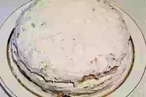 4. Выпекаем мраморный корж 40-45 минут в заранее разогретой до 175С духовке. Вынимаем ещё горячий корж из формы, остуживаем до комнатной температуры, заворачиваем в плёнку и оставляем на ночь.