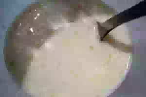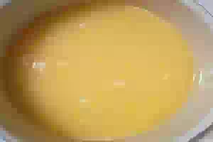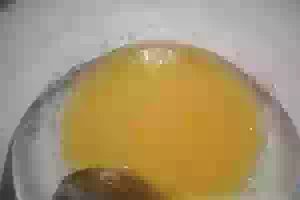8. Пока крем и сироп остывают, набухший желатин поставьте на паровую баню и разведите до прозрачности. Остудите растворенный желатин до теплого состояния, а потом введите в теплый апельсиновый крем. Хорошо перемешайте.