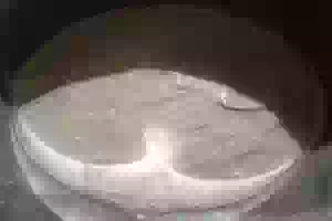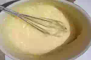 2. Извлеките бисквит из формы, пройдя ножом между формой и коржом. Бисквит должен получиться примерно 5 см в высоту. Дайте готовому бисквиту выстояться часов 6, а затем разрежьте на 3 одинаковых коржа.