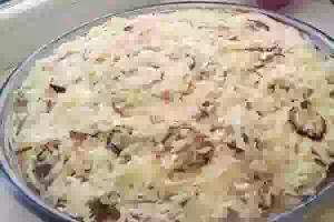 7. Лук очистить, вымыть, мелко нарезать и замариновать. Для этого добавить соль, 1 ч. ложку сахара и 1 дес. ложку уксуса. Передавить лук руками, хорошо перемешать и оставить на 5 минут.