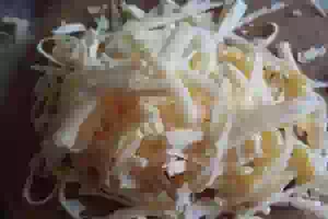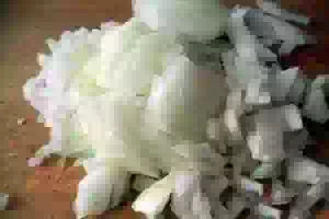7. Лук очистить, вымыть, мелко нарезать и замариновать. Для этого добавить соль, 1 ч. ложку сахара и 1 дес. ложку уксуса. Передавить лук руками, хорошо перемешать и оставить на 5 минут.