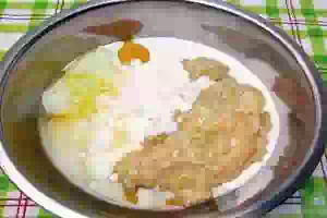 1. Перед тем как приготовить бананово-ореховый торт со сгущенкой, подготавливаем все необходимые продукты. Сливки должны быть холодными, поэтому отправляем их в холодильник до тех пор, пока не понадобятся. Духовку разогреваем до 180 градусов.