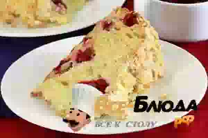 10. Торт остужаем, достаем из формы, посыпаем сахарной пудрой, нарезаем и подаем к столу.