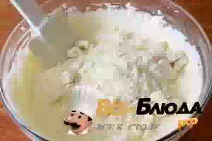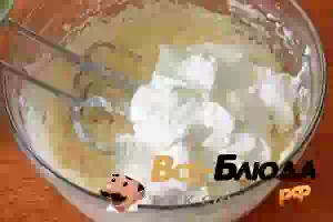 4. Добавляем просеянную муку с разрыхлителем и солью. Хорошо перемешиваем.