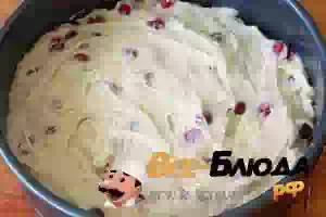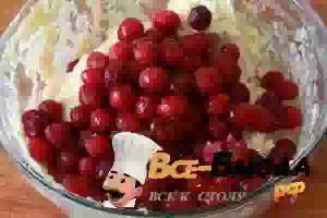 5. Клюкву смешиваем с сахаром и добавляем в тесто. Хорошо перемешиваем.
