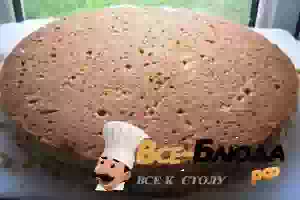 3. Достаем форму для запекания, диаметром 27-28 см. Форму смазываем сливочным маслом и выкладываем на нее ¼ часть теста. Выпекаем в разогретой духовке при 180 градусах – 12-15 минут, пока не образуется золотая корочка. Испечь, таким образом, 4 коржа для тортика, обрезаем по краям, чтобы коржи имели форму круга.