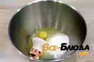 3. В большой миске или чаше кухонной машины соедините яйца и сахар.