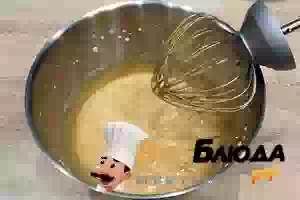 5. Снова взбейте яичную массу, она приобретёт карамельный цвет.