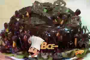 12. Через 8 часов достаем форму, накладываем сверху блюдо и переворачиваем. Снимаем пакет и получаем вот такой торт!