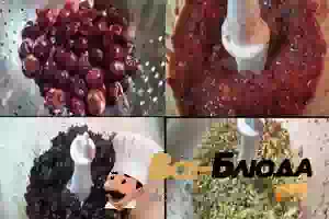 5. Готовим начинку. Вишню разморозить и слить всю жидкость. Слегка отжать. Измельчаем в блендере вишню, чернослив и орехи.