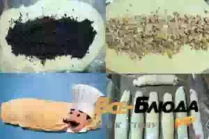7. Противень застилаем пергаментом. Раскатываем каждый кусочек теста, кладем начинку и формируем рулетики. Орехи, прежде чем завернуть в рулет, присыпьте сахаром. Аккуратно выкладываем на противень и ставим в заранее разогретую до 180 градусов духовку на минут 20-25. Готовность определяем по румяному цвету рулетов.