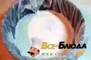 8. Пока пекутся рулеты, готовим форму. Нам будет нужна круглая глубокая емкость. Застилаем форму пленкой или большим целлофановым пакетом. Заливаем дно тонким слоем крема. Ждем готовности рулетов.