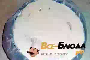 4. Для крема сметану смешайте с сахаром до его полного растворения. Приблизительно 150г отложите и уберите в холодильник, а оставшийся крем не убирайте.