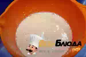 2. В другой чаше смешать яйца с сахаром. Взбить до пышной пены.