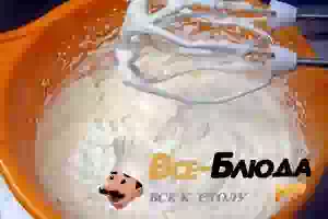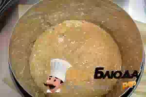5. Массу хорошо перемешать. Тесто получается густое, льющееся.