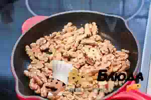1. Слегка обжарить орехи на сухой (без масла) сковороде. При желании орехи можно очистить от коричневой кожуры. Когда орехи остынут, измельчить в блендере до очень мелкой крошки.