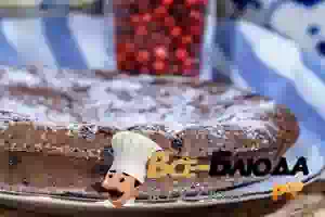 Шоколадный пирог с брусникой Ингредиенты: смесь пряностей для пряника - 1 ч.л. брусника (свежая) - 50-100г шоколад (горький) - 100г сливочное масло - 100г яйцо - 3 шт. сахар - 100г мука - 50г