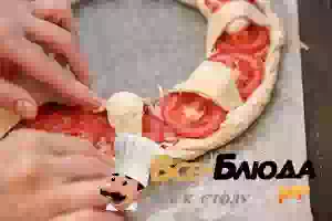 9. Края пиццы слегка подогнуть, чтобы тесто прикрывала край начинки.