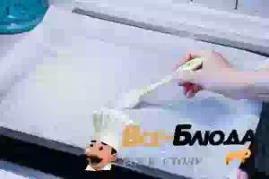 4. Противень с бортиками застелить бумагой для выпечки и смазать с помощью кулинарной кисти растительным маслом.