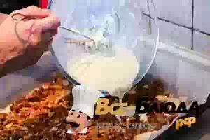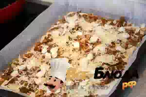 10. Переложить начинку на основу для пиццы, стараясь её разместить как можно равномернее.