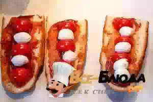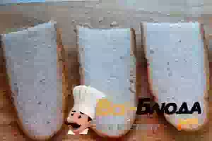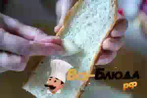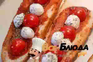 1. Чуть подсохший багет в зависимости от длины разрезать на 2-3 равные части. Затем каждую часть разрезать пополам вдоль, чтобы получить длинные лодочки. Дальше на ваш выбор: 1) оставить багет как есть; 2) примять или выковырять мякиш, делая по центру углубление, в которое будем укладывать начинку.