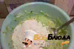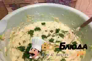 5. Далее всыпать муку и замесить тесто, густотой как на оладьи. При необходимости посолить и добавить муку.