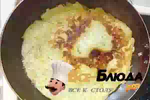 8. Поджарить на среднем огне под крышкой овощной блин до корочки и аккуратно перевернуть на другую сторону.