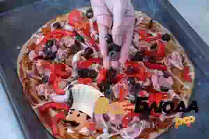 » » Пицца из ржаного теста с беконом, колбасками и сладким перцем