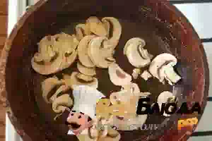 5. В сковороде сначала обжарить на растительном масле грибы.