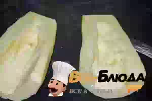 1. Кабачок вымыть, обтереть досуха. Если кожица плотная, то срезать её. Разрезать кабачок на несколько частей. Если есть крупные семена, вычистить.
