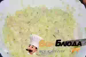 2. Измельчить кабачок на крупной или средней терке. Отжать, а мякоть переложить в глубокую миску. Добавить яйцо, соль, зелень, специи.