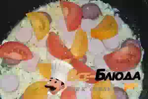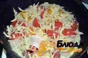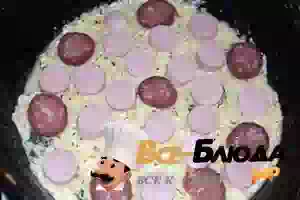 6. На овощную основу разложить колбасу.