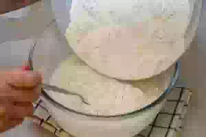 2. Вымесить однородное, мягкое, очень густое тесто. Прикрыть миску салфеткой и оставить на 30 минут при комнатной температуре. Тесто для пиццы на кефире готово.