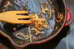 5. Для начинки в сковороде разогреть растительное масло (можно добавить кусочек сливочного масла) и обжарить до карамелизации.