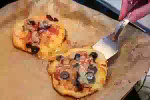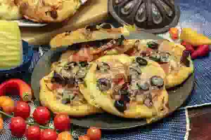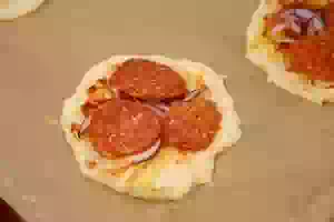 Мини-пицца с колбасой пепперони, вялеными томатами и сыром моцарелла