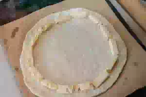 3. Отступая примерно 2 см от края лепешки, уложить брусочки сыра.