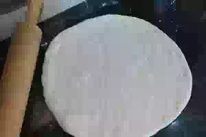 2. Переложить шар из теста на припудренную мукой рабочую поверхность. Оставшееся тесто прикрыть полотенцем, чтобы оно не подсыхало. Сначала растянуть, а затем раскатать тесто в лепешку толщиной около 5 мм и переложить на бумагу для выпечки. Это делается для того, чтобы было проще перенести пиццу с начинками на горячий противень.
