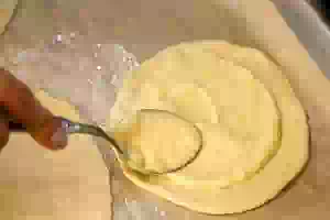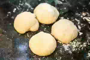 7. Тесто разделить на небольшие кусочки, скатать в шар. Прикрыть салфеткой и оставить на 10-15 минут.