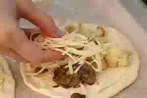 9. Смазать пиццу соусом бешамель с сыром.