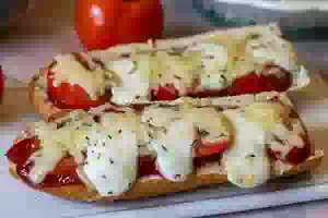 Как приготовить "Пицца на багете с помидорами и сыром моцарелла"