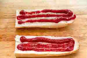 2. Смазать хлеб готовым соусом для пиццы или любым соусом на ваш вкус.